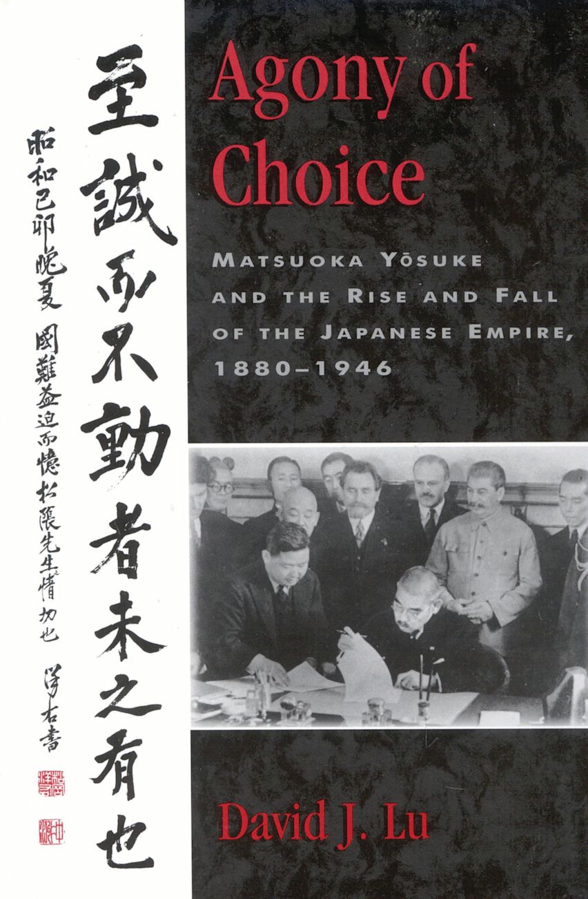 Agony of Choice, the life of Japanese statesman and diplomat Matsuoka Yosuke, offers a vivid narrative of twentieth-century Japanese diplomatic history. Matsuoka was an American-educated Japanese foreign minister who became a vocal advocate of Japanese expansionism in echo of the America he so admired. His promotion of alliances and relationships with countries such as Nazi Germany and the Soviet Union, however, not only led Japan to war with the United States but also led to Matsuoka's involvement with and eventual indictment for atrocities committed during the war. Through extensive archival research and fascinating personal interviews, David Lu explores Matsuoka's pivotal role in the drama of Japan's withdrawal from the League of Nations, empire-building in Asia, and the development of interwar Japanese politics.
