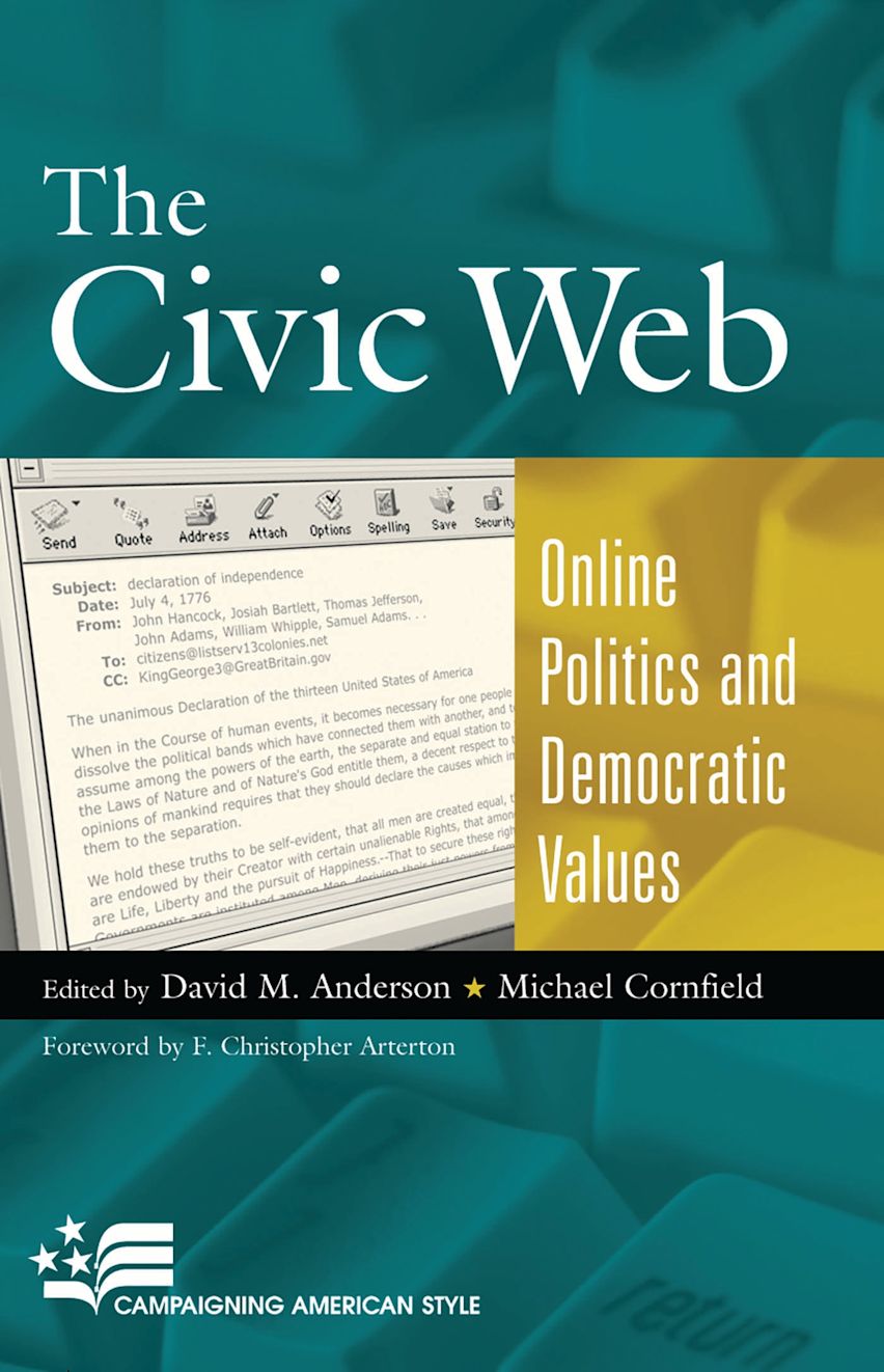 Political web sites and e-mail lists were novelties in 1996. By 2000, they were a news trend. By 2004, they will be a part of every electoral and policy campaign. News-seekers, activists, and decision makers increasingly turn to the Net as a matter of course. The Civic Web delineates the basic issues, opportunities, and dilemmas posed by the introduction of computer-networked communications into U.S. national politics. Leading scholars from several academic disciplines join pioneer practitioners of online advocacy, discussion, and law in considering how the Internet can host, and even advance, enlightened self-government by a free people in a constitutional republic.